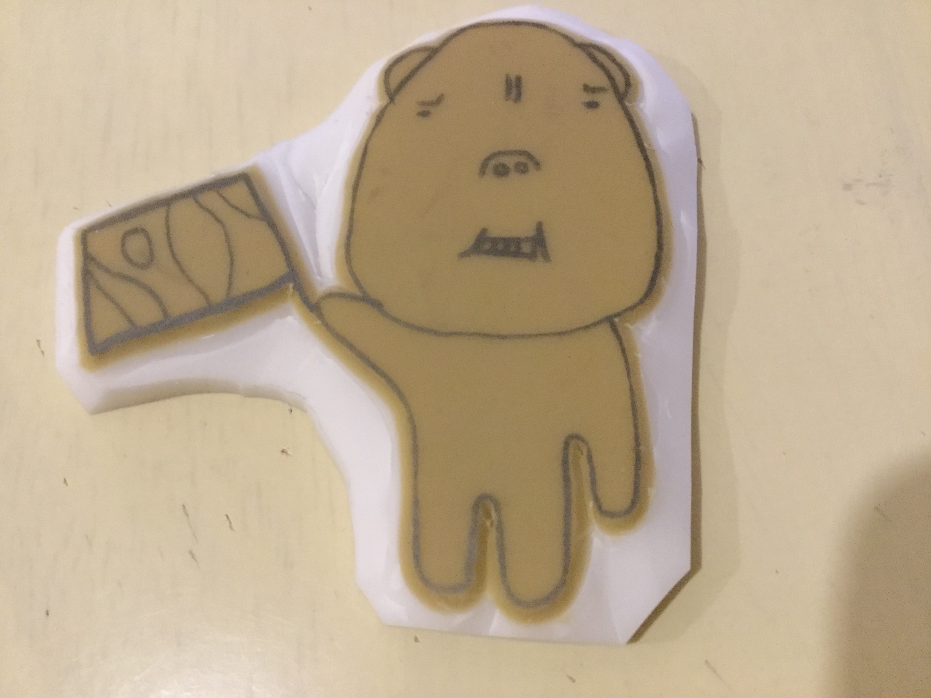 刃のところは四角いくり抜きだから消しゴムを回したら丸くなっちゃう、ということはありません!消しゴムはくるんと回しますが、刃の向きに注意しながら、刃が線になぞっていることを確認しながらゆっくりと消しゴムはんこを回して彫っていきましょう。こんな感じで彫れました!
