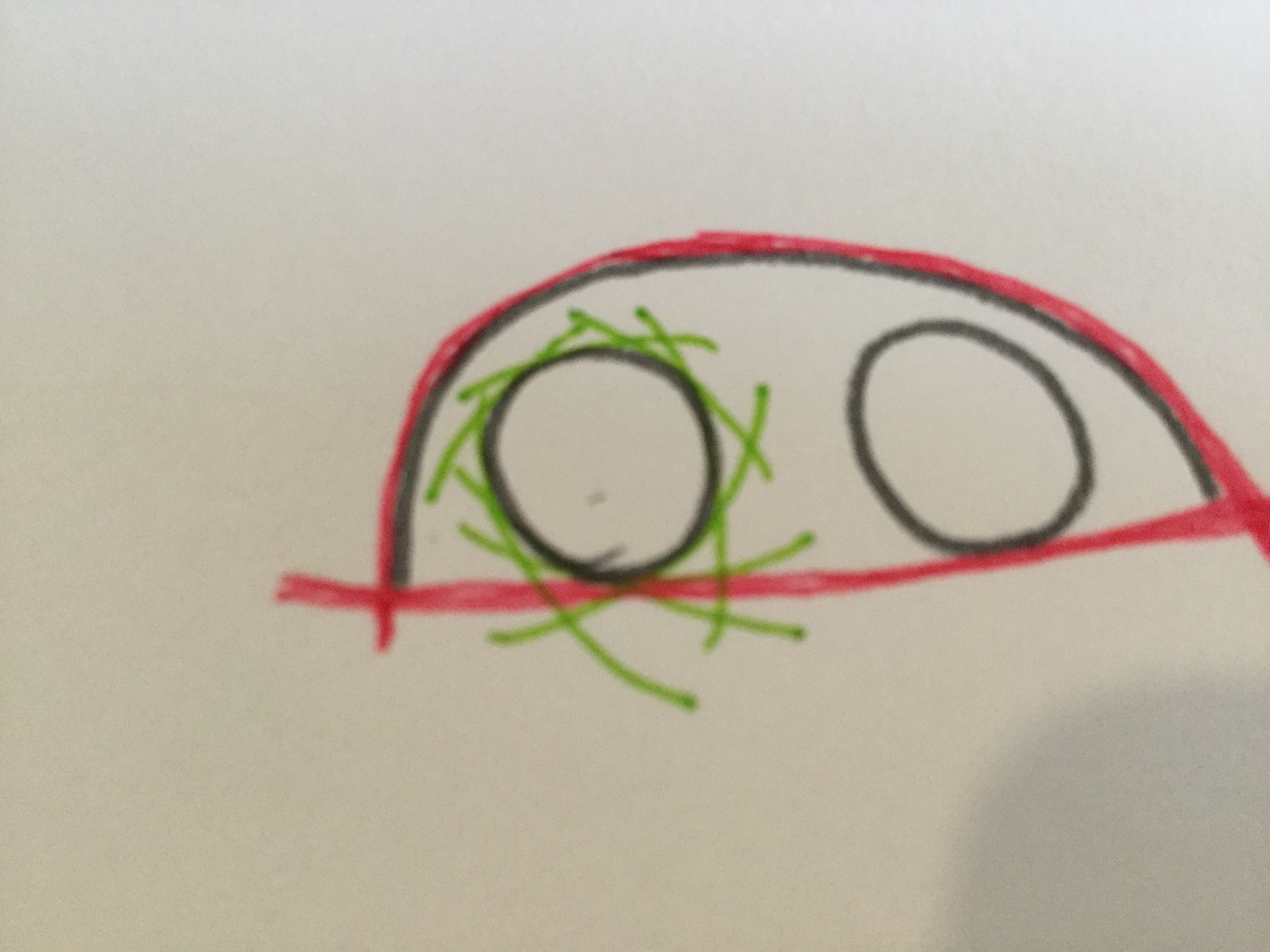 目の輪郭の残りは一気に彫れれば彫ってしまいます。でも小回りするのが難しそうならば何度も大回りを繰り返しながら彫りましょう。